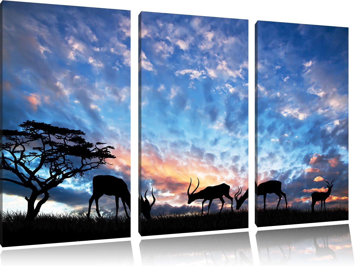 Pixxprint Tiere in der freien Natur am Abend 3-Teiler Leinwandbild 120x80 Bild auf Leinwand