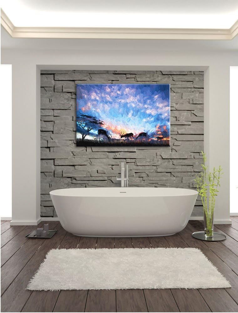 Pixxprint Tiere in der freien Natur am Abend Kunst Pinsel Effekt, Format: 100x70 auf Leinwand, XXL r