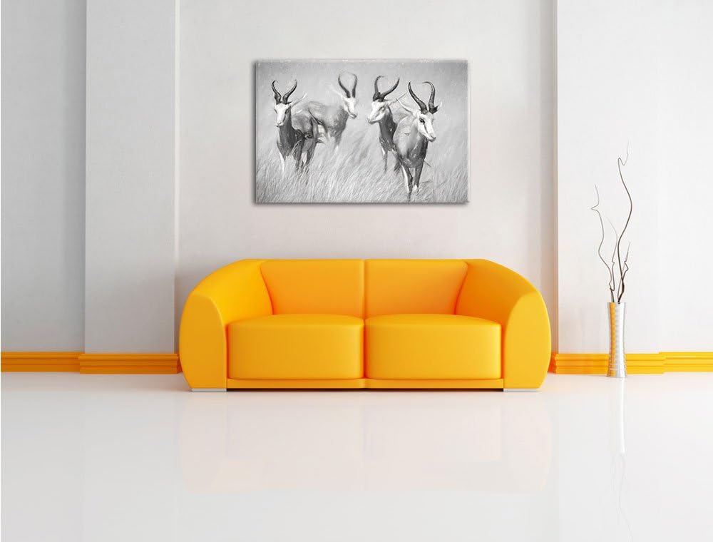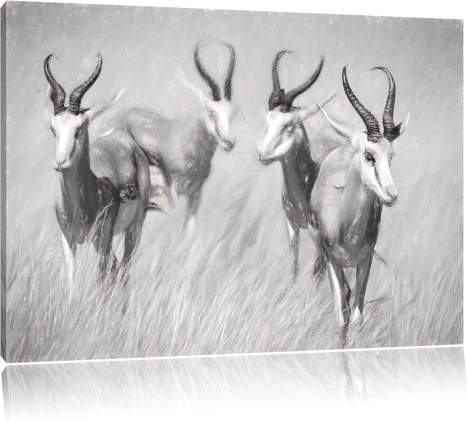 Pixxprint Tiere in Savanne als Leinwandbild/Grösse: 100x70 cm/Wandbild/Kunstdruck/fertig bespannt, 1