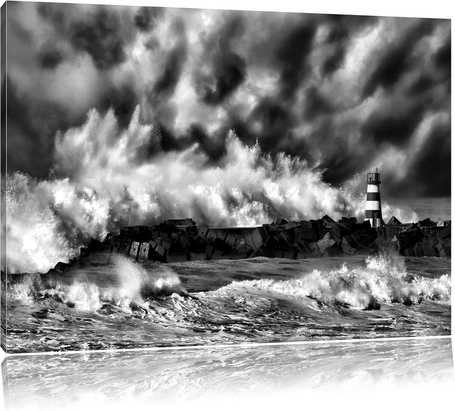 Pixxprint Tobendes Meer mit Leuchtturm / 100x70cm Leinwandbild bespannt auf Holzrahmen/Wandbild Kuns