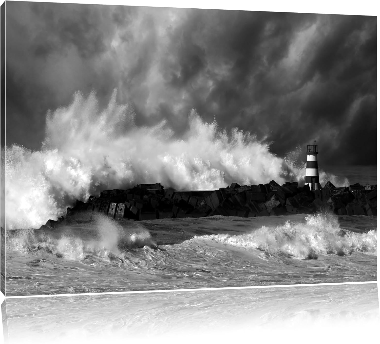Pixxprint Tobendes Meer mit Leuchtturm als Leinwandbild/Grösse: 100x70 cm/Wandbild/Kunstdruck/fertig
