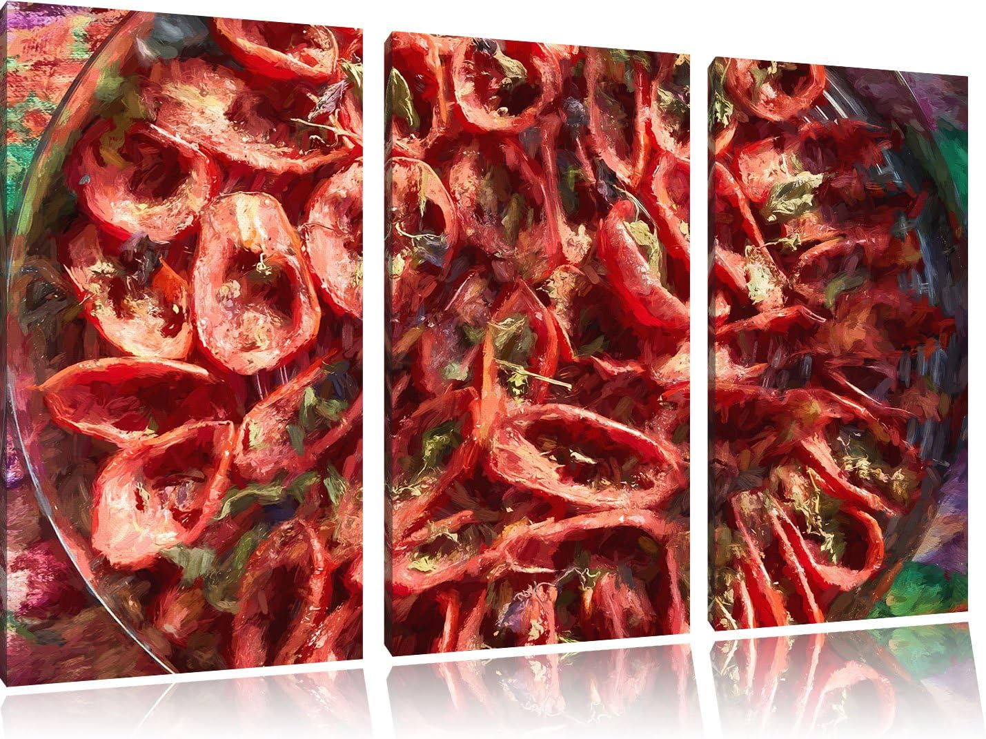 Pixxprint Tomaten Olivenöl Kräuter als Leinwandbild/Grösse: 3 Teilig (120x80) cm/Wandbild/Kunstdruck