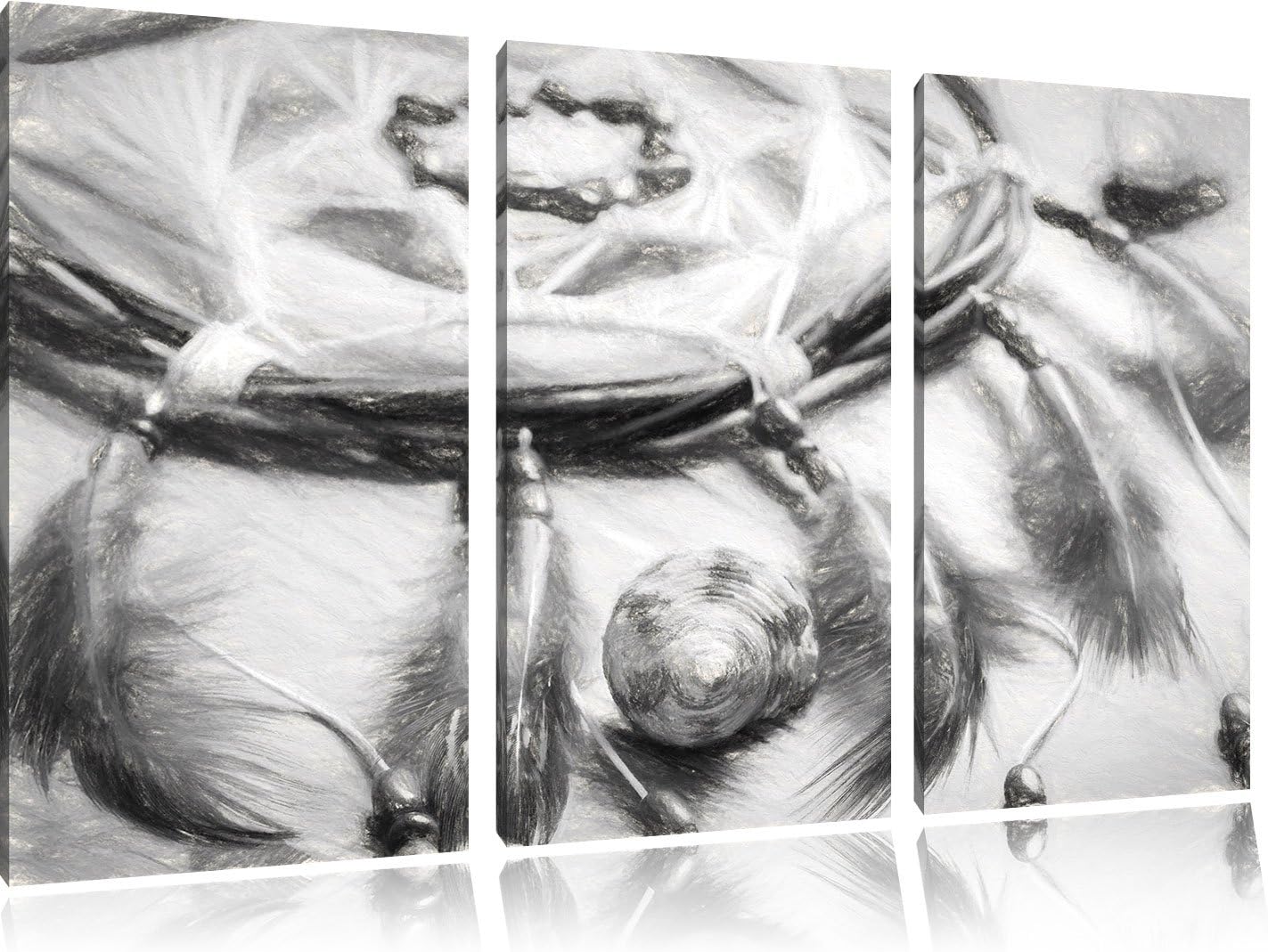Pixxprint Traumfänger mit Federn / 3-Teilig/Gesamtmass 120cm Leinwandbild bespannt auf Holzrahmen/Wa
