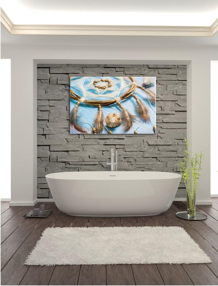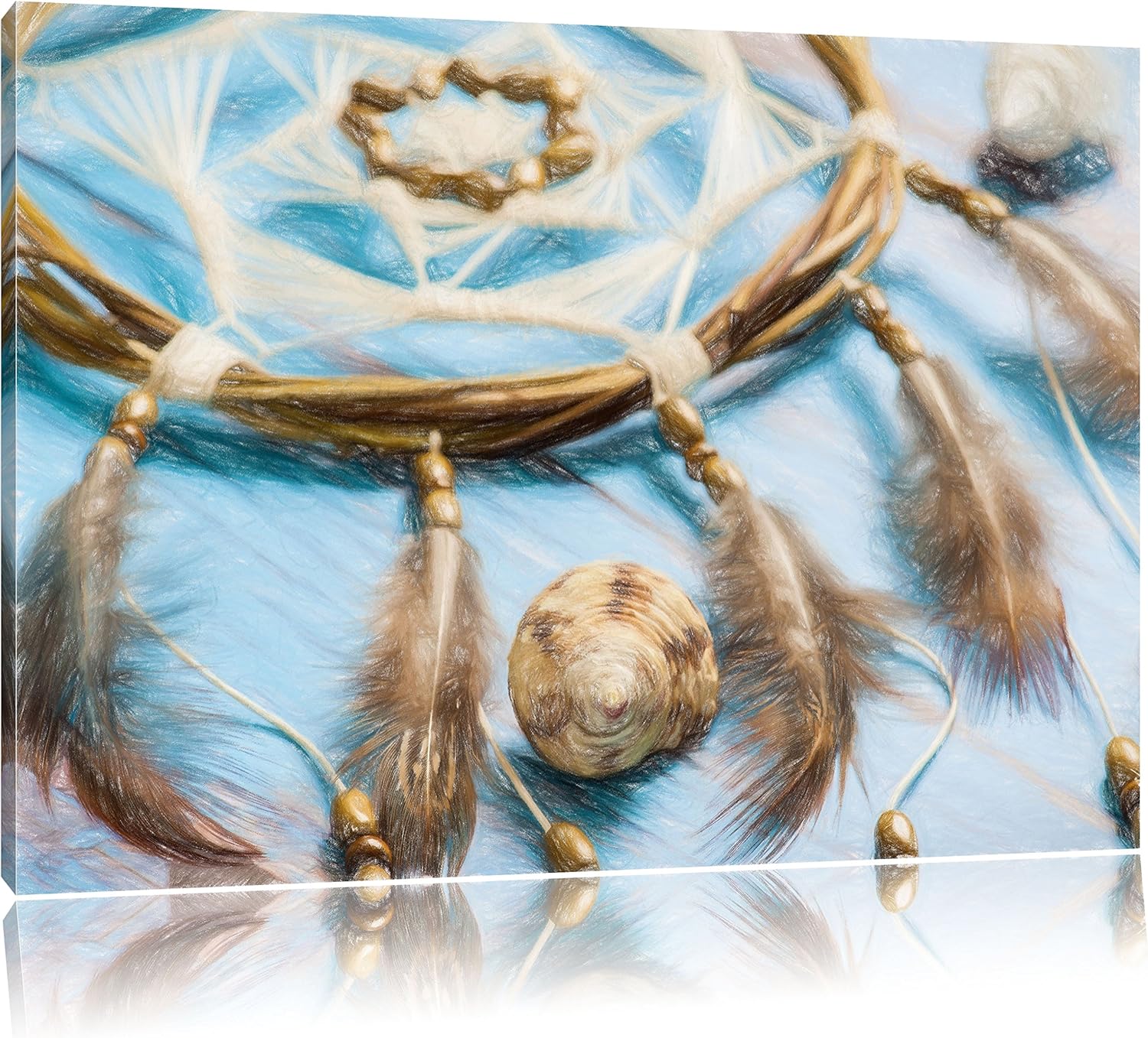 Pixxprint Traumfänger mit Federn als Leinwandbild/Grösse: 100x70 cm/Wandbild/Kunstdruck/fertig bespa
