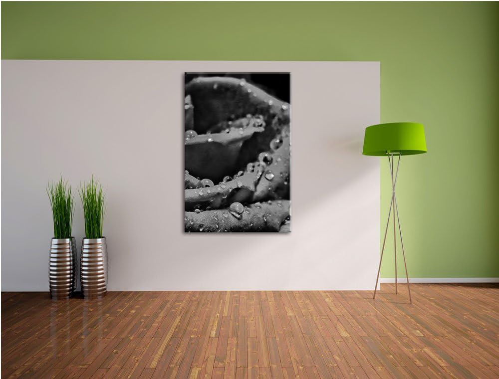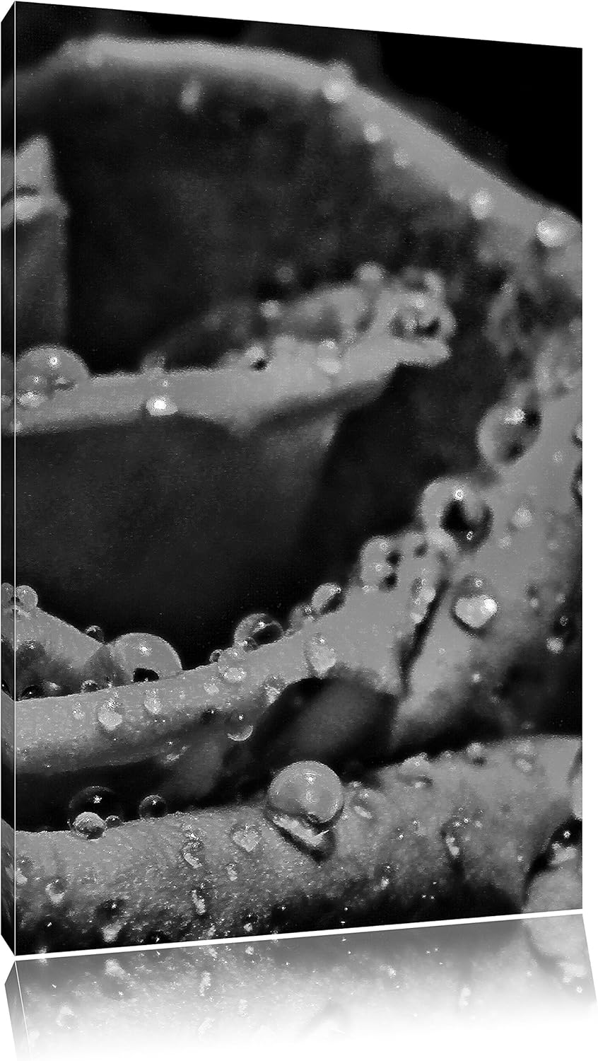 Pixxprint Tropfen auf roter Rose als Leinwandbild/Grösse: 100x70 cm/Wandbild/Kunstdruck/fertig bespa