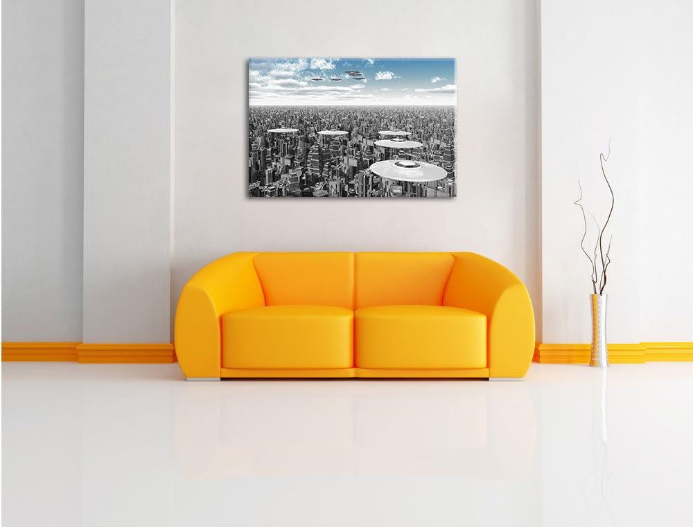 Pixxprint UFO´s über der Stadt B&W Detail, Format: 100x70 auf Leinwand, 100x70