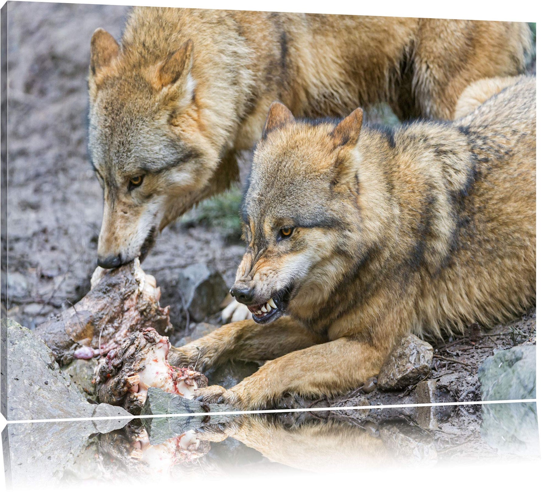 Pixxprint Wölfe beim Fressen auf Leinwand, XXL riesige Bilder fertig gerahmt mit Keilrahmen, Kunstdr