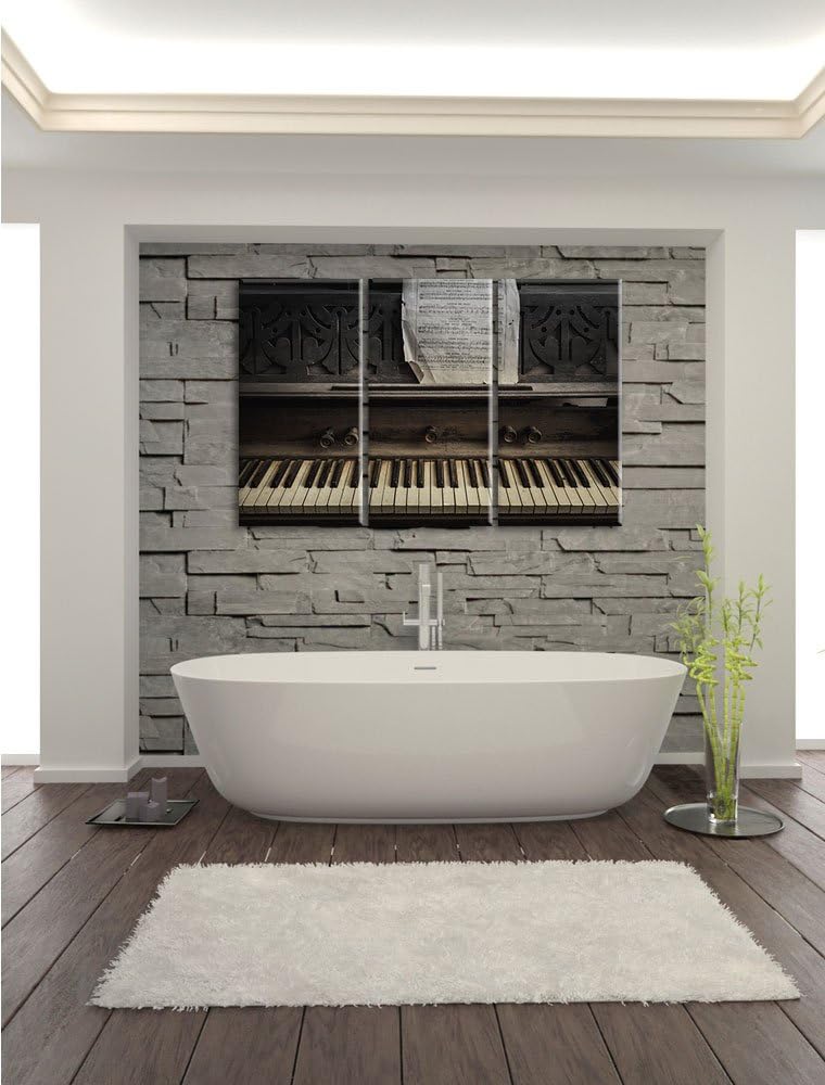 Pixxprint Antikes Klavier mit Notenblatt Schwarz/Weiss 3-Teiler Leinwandbild 120x80 Bild auf Leinwan