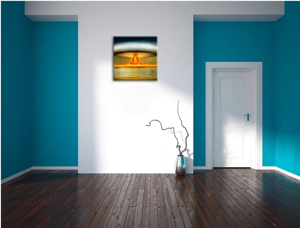 Pixxprint Atombombe Neon, Format: 70x70 auf Leinwand, XXL riesige Bilder fertig gerahmt mit Keilrahm