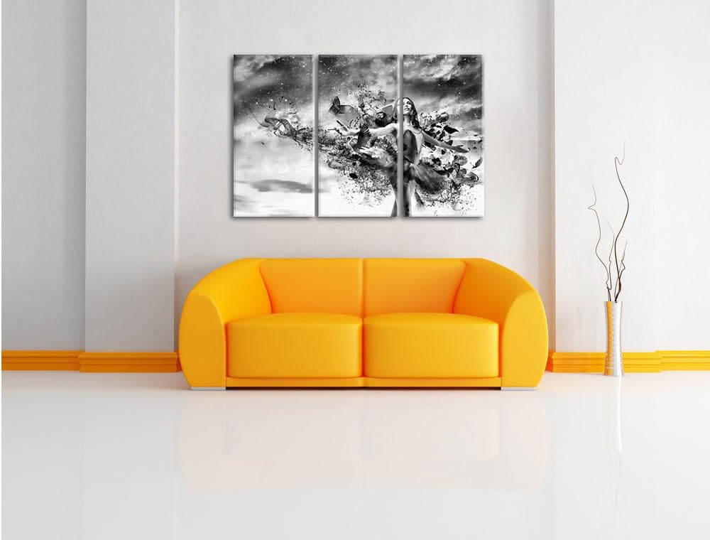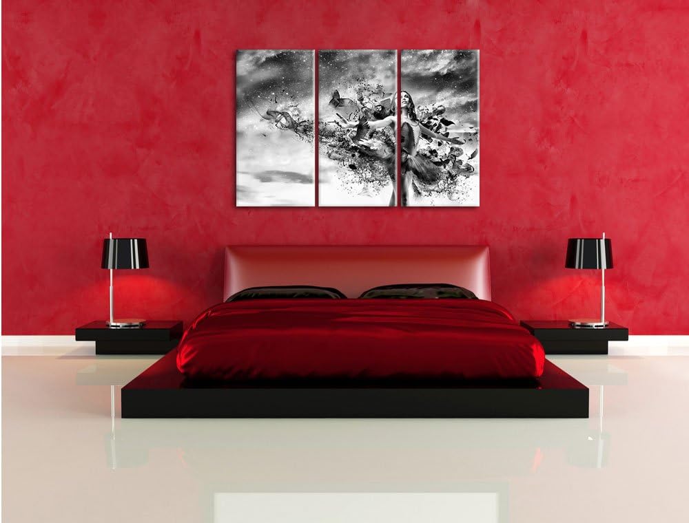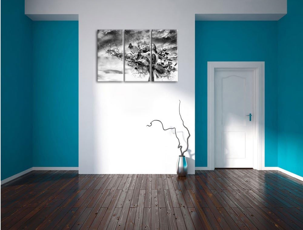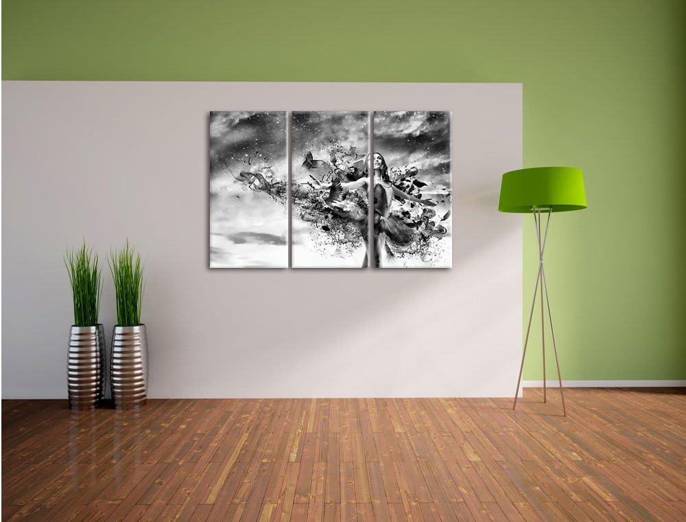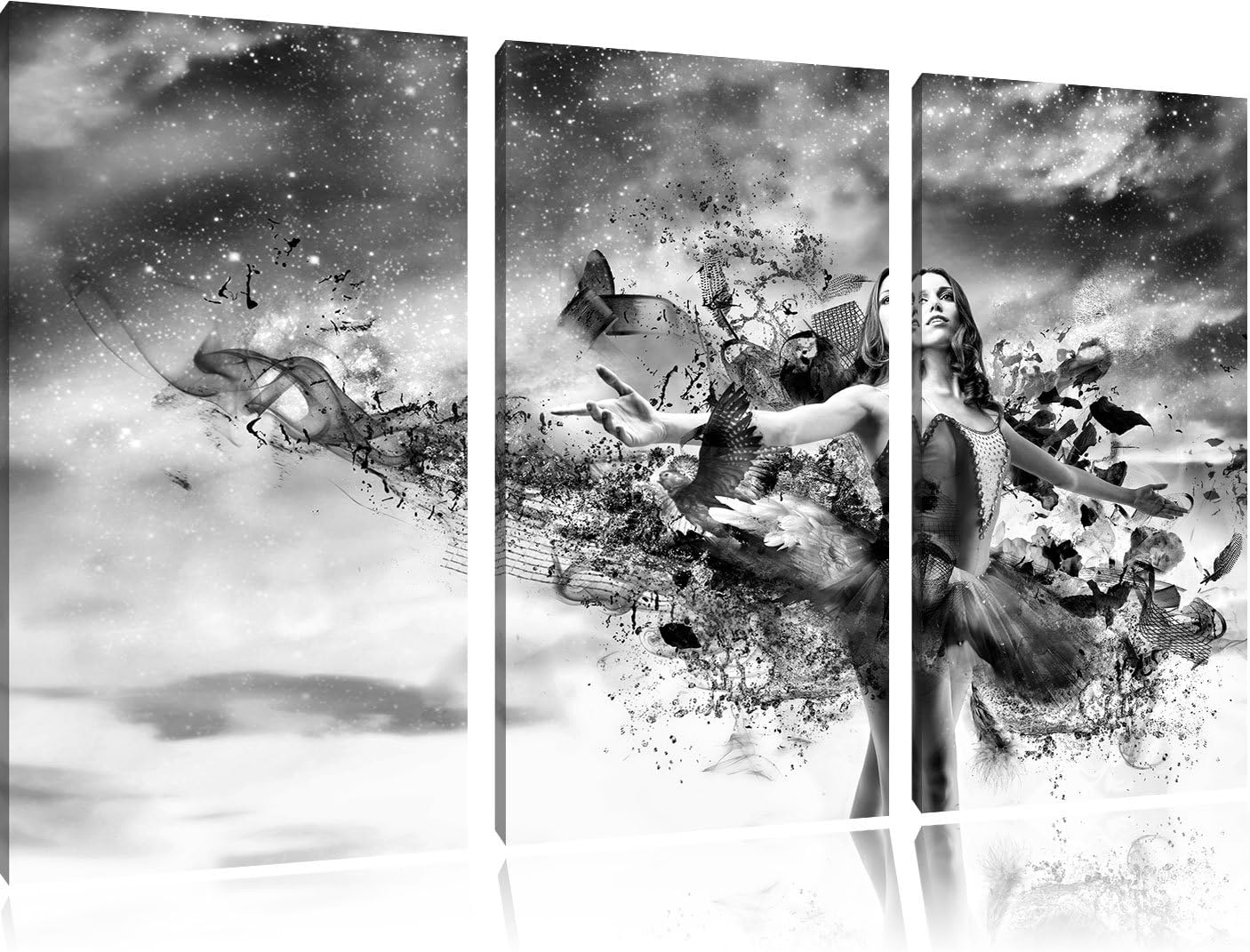 Pixxprint Ballerina im Kleid / 3-Teilig/Gesamtmass 120cm Leinwandbild bespannt auf Holzrahmen/Wandbi