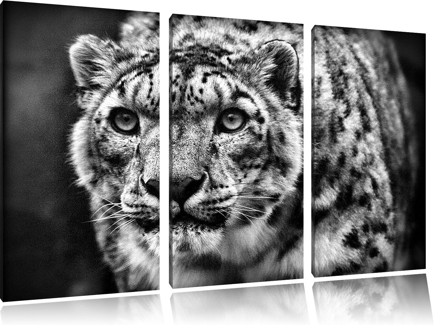 Pixxprint beeindruckender Schneeleopard als Leinwandbild/Grösse: 3 Teilig (120x80) / Wandbild/Kunstd