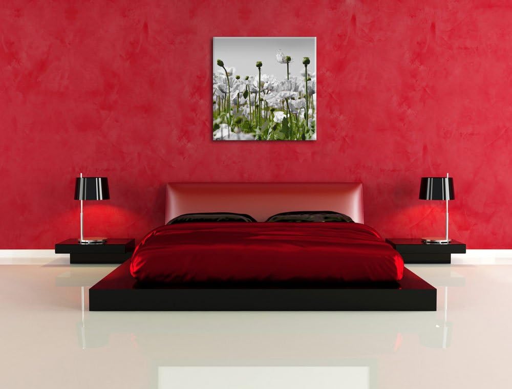 Pixxprint Blumenwiese Mohnblumen schwarz/weiss, Format: 70x70 als Leinwandbild, 70x70