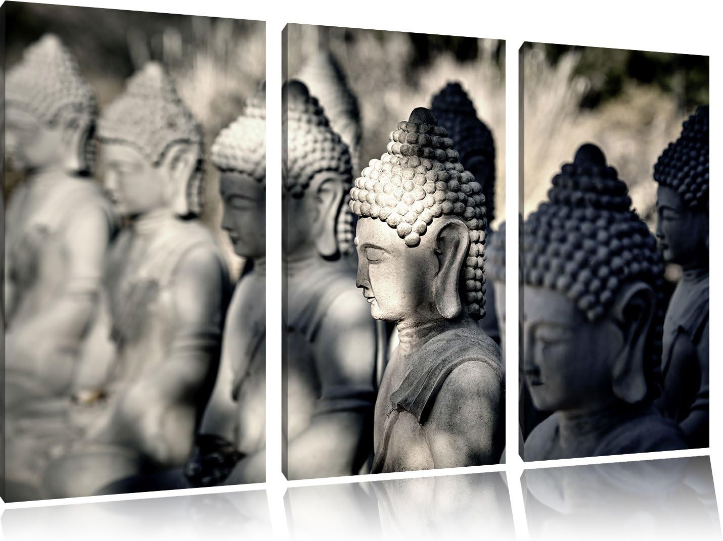 Pixxprint Buddha-Statuen in Einer Reihe als Leinwandbild/Grösse: 3 Teilig (120x80) cm/Wandbild/Kunst