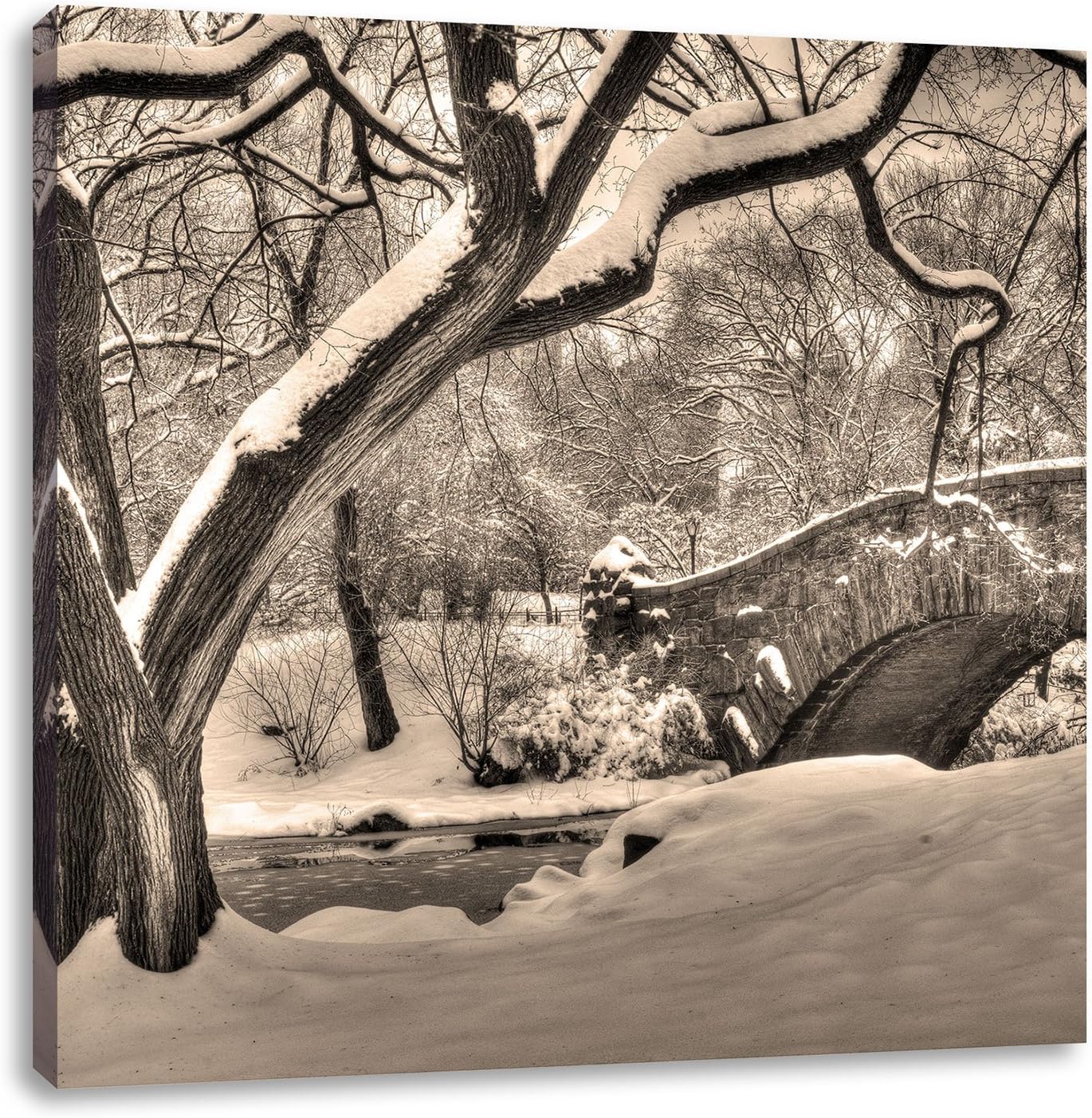 Pixxprint Central Park New York Schwarz/Weiss, Format: 70x70 auf Leinwand, 70x70