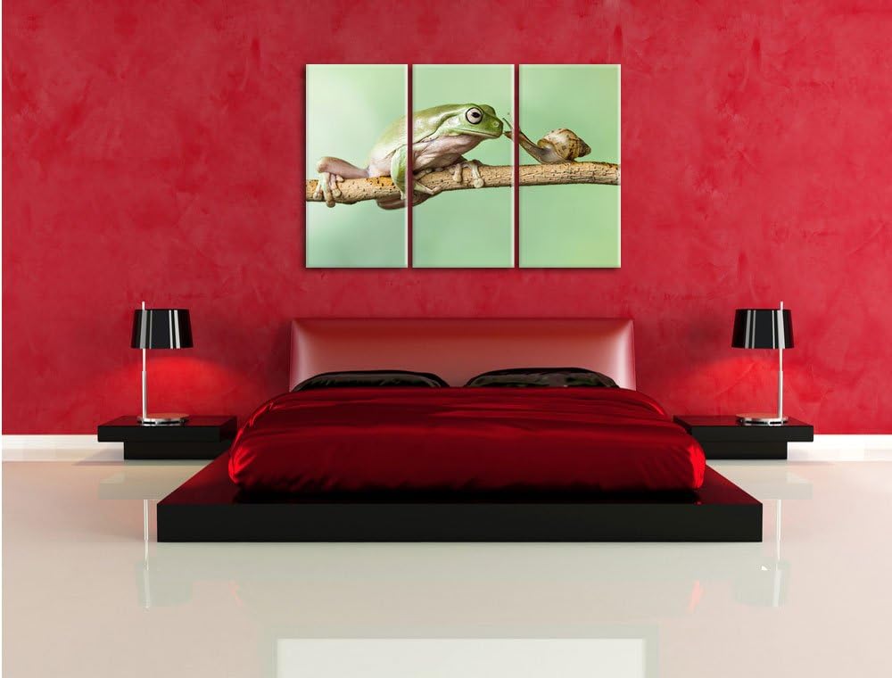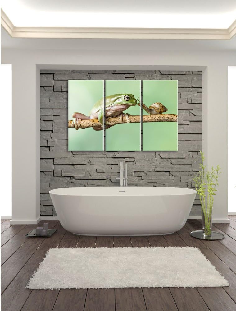 Pixxprint der Frosch und die Schnecke als Leinwandbild/Grösse: 3Teilig / Wandbild/Kunstdruck/fertig