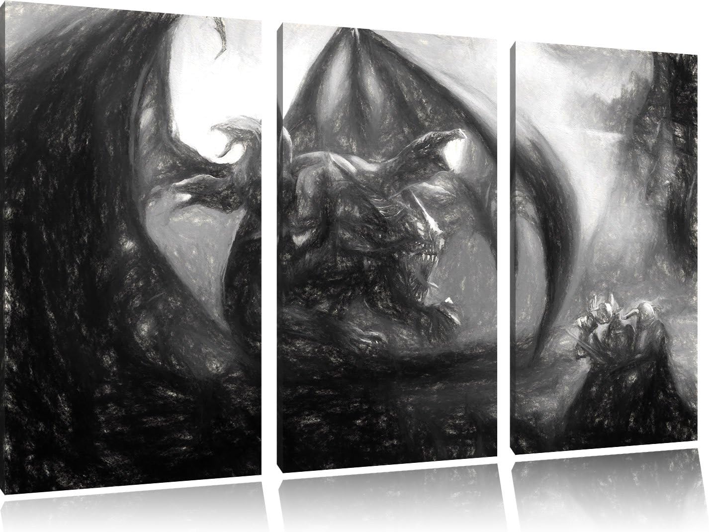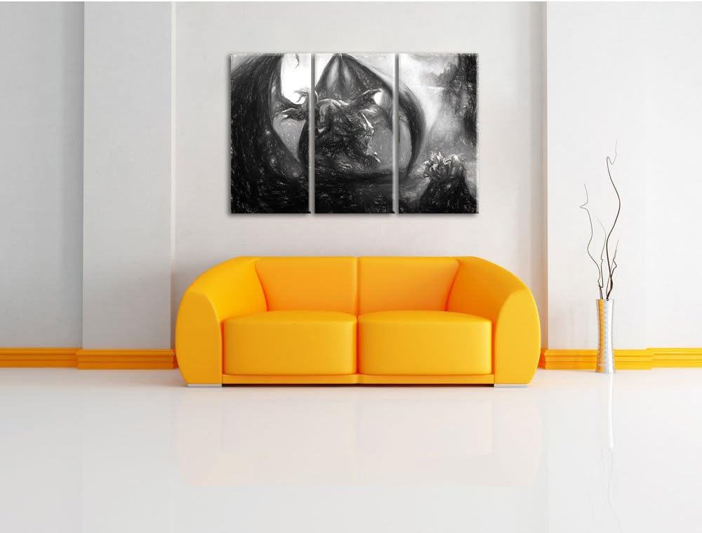 Pixxprint Drachen Schlangen / 3-Teilig/Gesamtmass 120cm Leinwandbild bespannt auf Holzrahmen/Wandbil