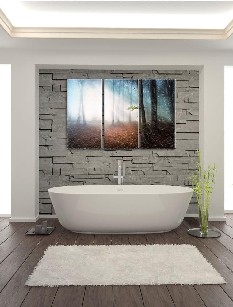 Pixxprint Düsterer Wald im Nebel / 3-Teilig/Gesamtmass 120cm Leinwandbild bespannt auf Holzrahmen/Wa