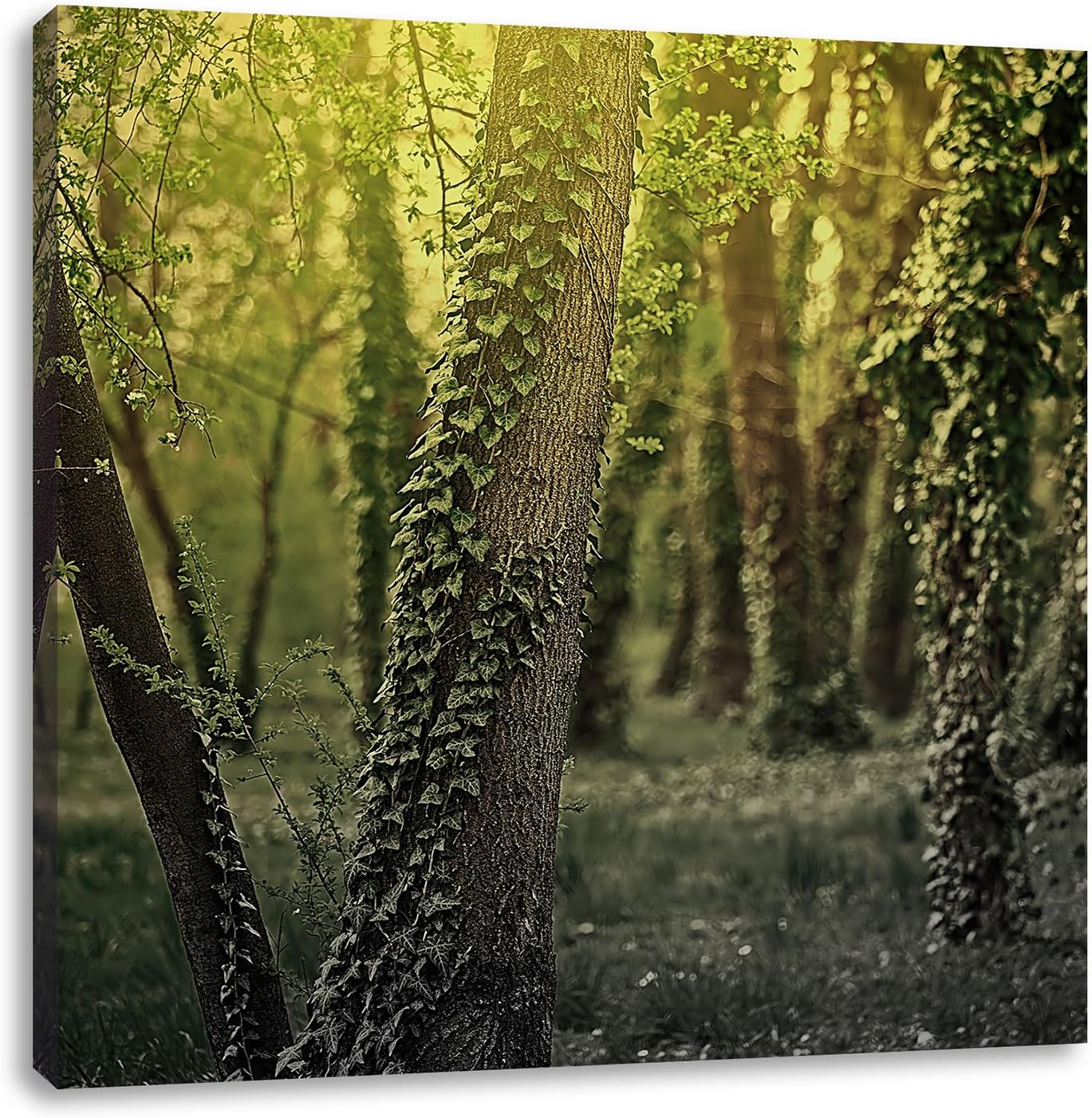 Pixxprint Efeuranken wachsen an Bäumen schwarz/weiss, Format: 70x70 auf Leinwand, 70x70