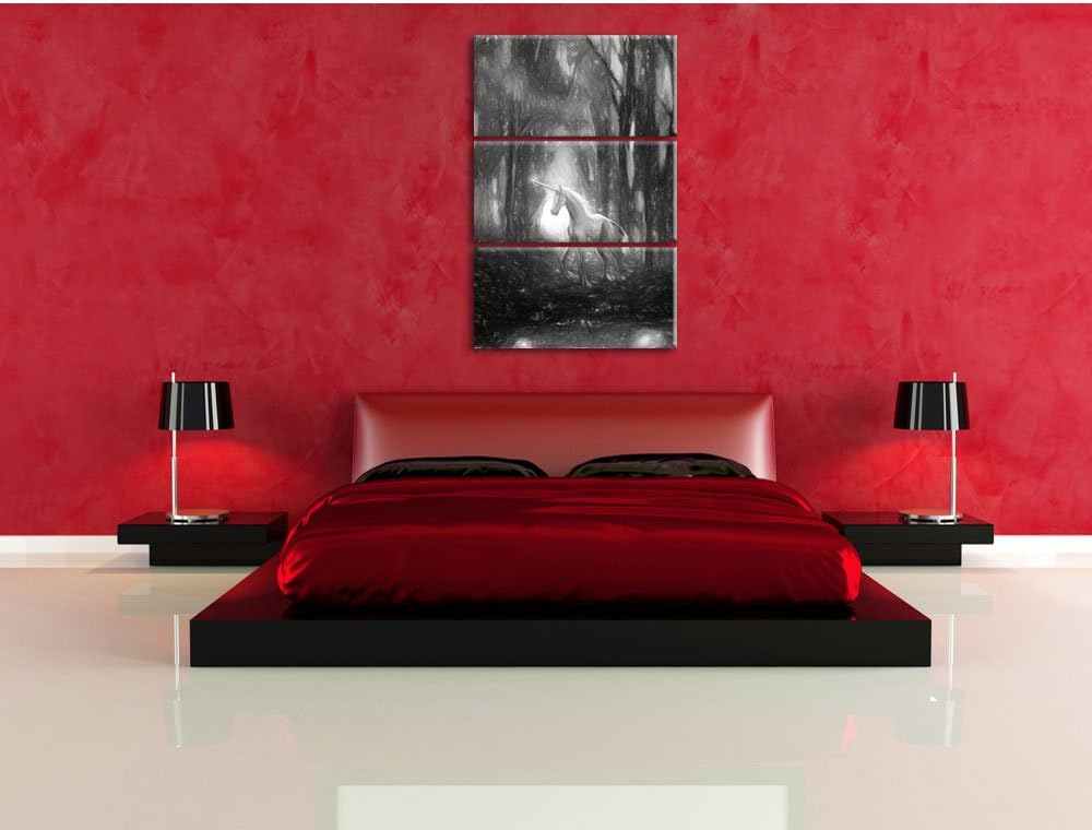 Pixxprint Einhorn im Zauberwald / 3-Teilig/Gesamtmass 120cm Leinwandbild bespannt auf Holzrahmen/Wan