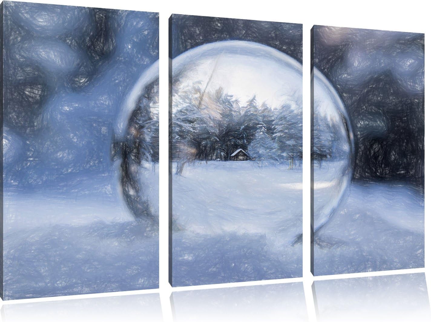 Pixxprint Eiskugel Winterlandschaft / 3-Teilig/Gesamtmass 120cm Leinwandbild bespannt auf Holzrahmen