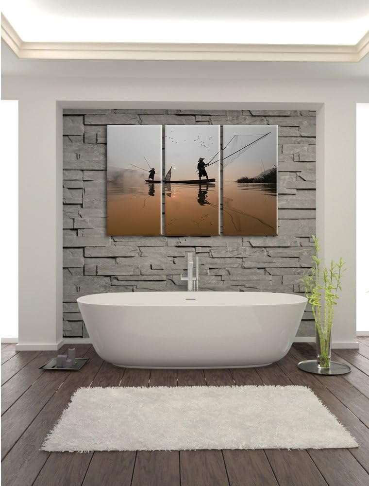 Pixxprint Fisher beim Angeln im Mekong-Fluss in Thailand B&W Detail 3-Teiler Leinwandbild 120x80 Bil