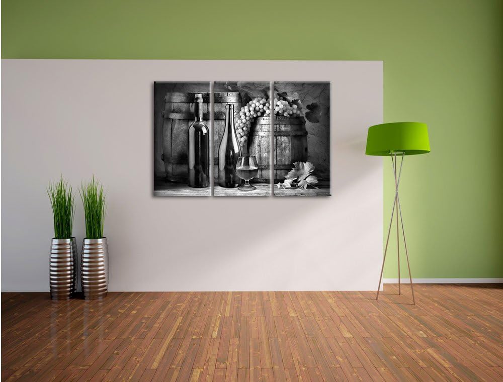 Pixxprint Fässer mit Weintrauben und Wein als Leinwandbild/Grösse: 3 Teilig (120x80 cm) cm/Wandbild/