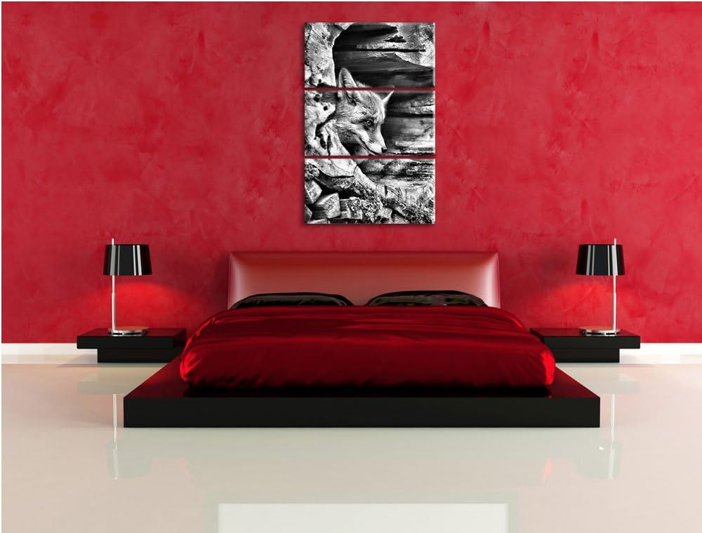 Pixxprint Fuchs im Baumstamm als Leinwandbild/Grösse: 3 Teilig (120x80) / Wandbild/Kunstdruck/fertig