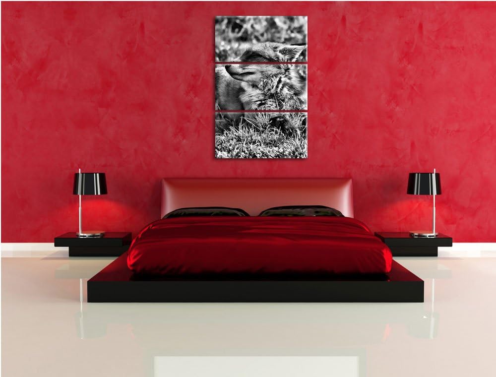 Pixxprint Fuchs im Gras als Leinwandbild/Grösse: 3 Teilig (120x80) / Wandbild/Kunstdruck/fertig besp