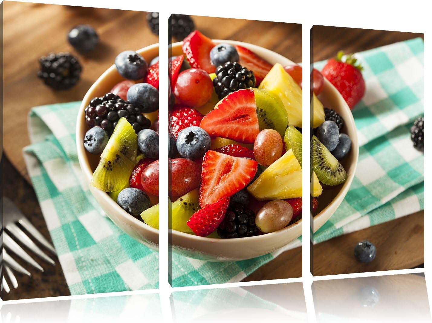 Pixxprint Gesunde Obstvielfalt / 3-Teilig/Gesamtmass 120cm Leinwandbild bespannt auf Holzrahmen/Wand