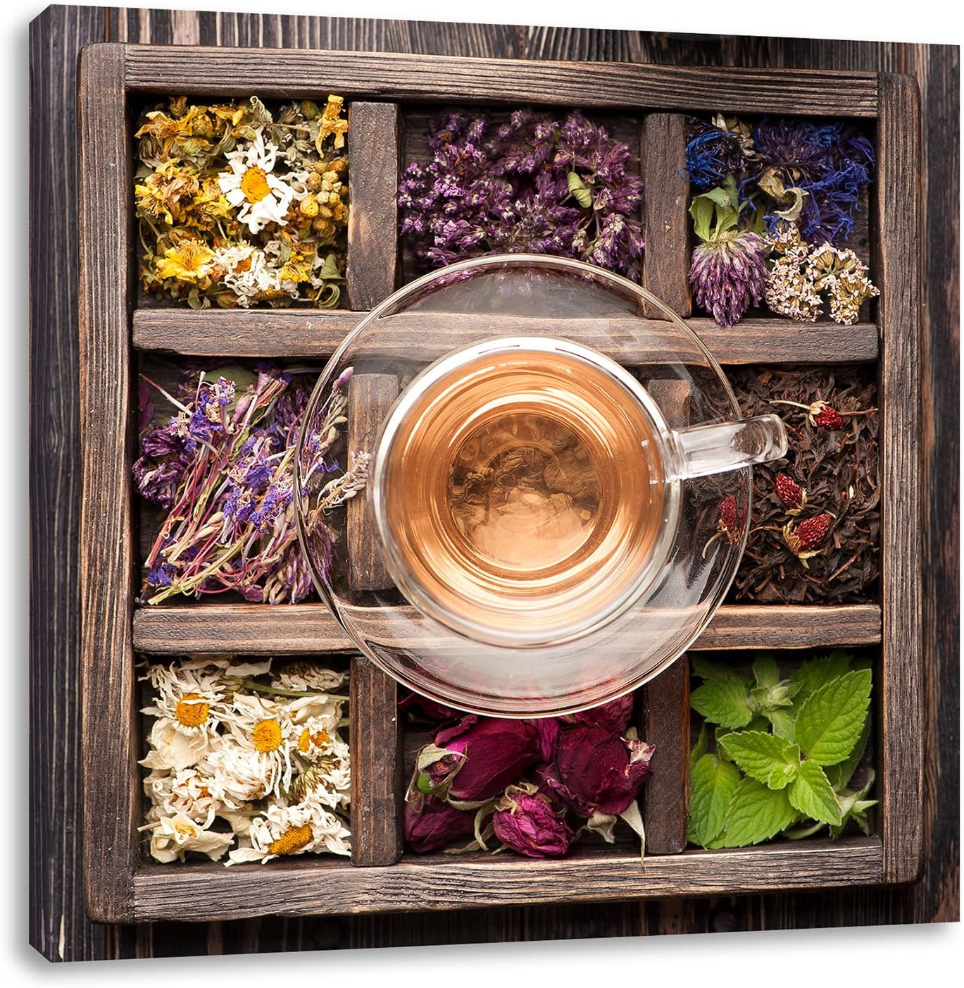 Pixxprint getrocknete Blumen in rustikalem Setzkästchen, Format: 70x70 auf Leinwand, 70x70