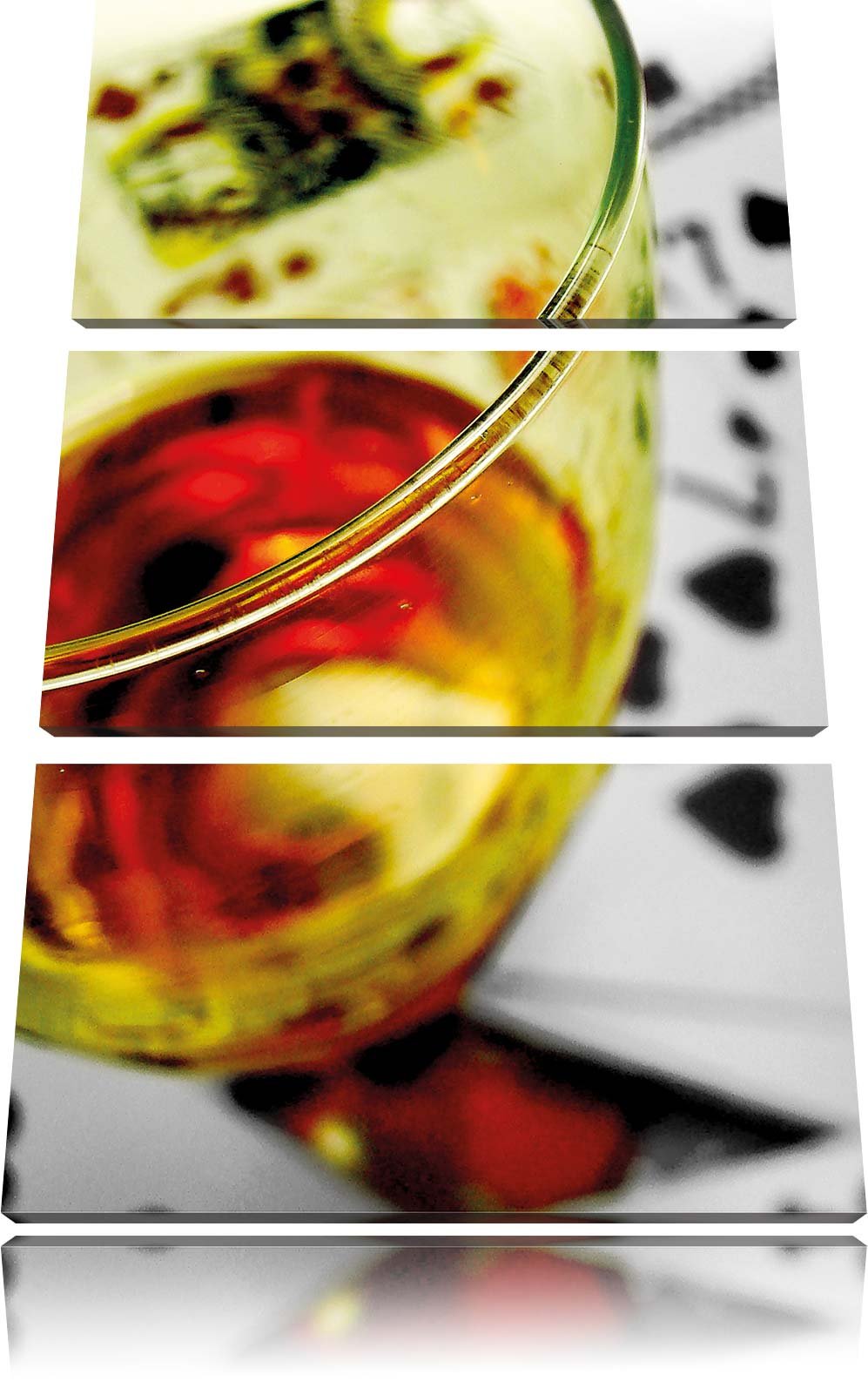 Pixxprint Glas Wein auf Spielkarten/Format: 3-Teiler (120x80cm) cm/Leinwandbild fertig bespannt Wand