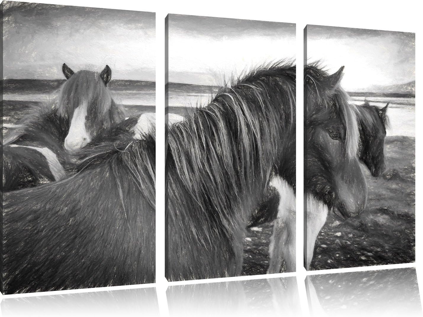 Pixxprint Herde aus Wildpferden als Leinwandbild/Grösse: 3 Teilig (120x80 cm) cm/Wandbild/Kunstdruck
