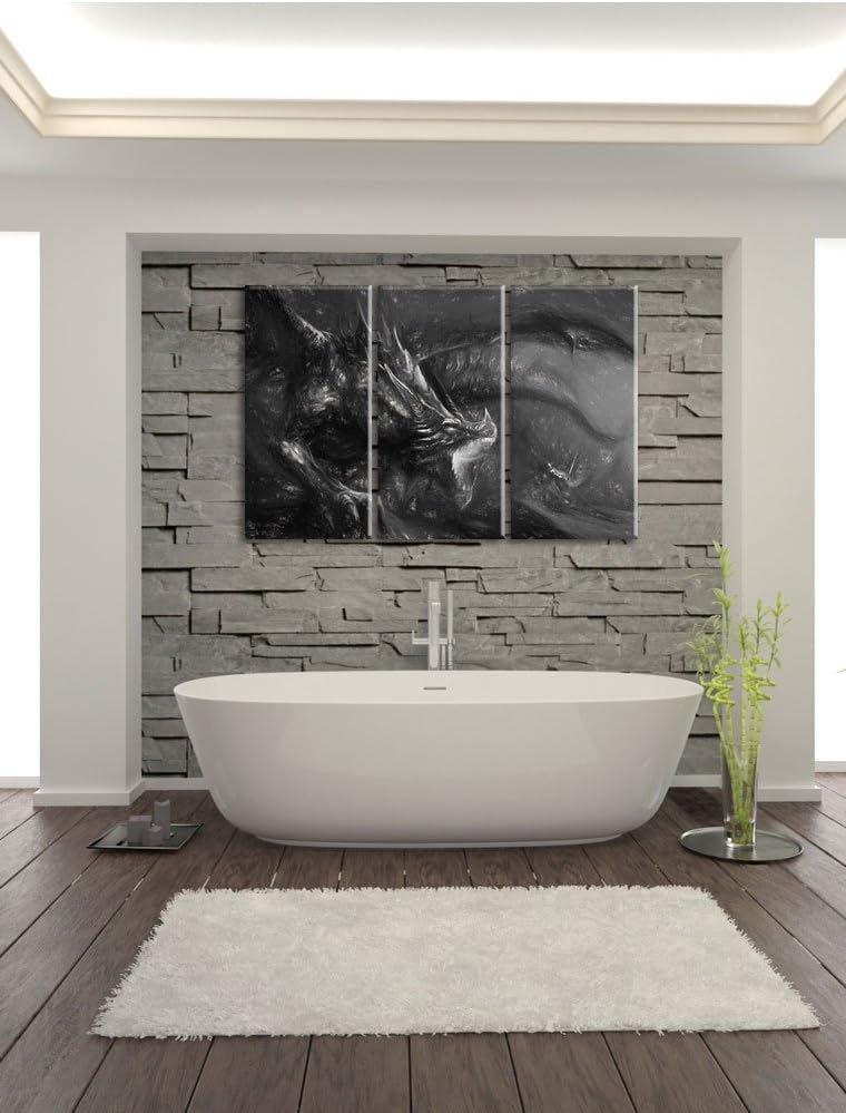 Pixxprint Kampf zwischen Mensch und Drache als Leinwandbild/Grösse: 3 Teilig (120x80 cm) cm/Wandbild