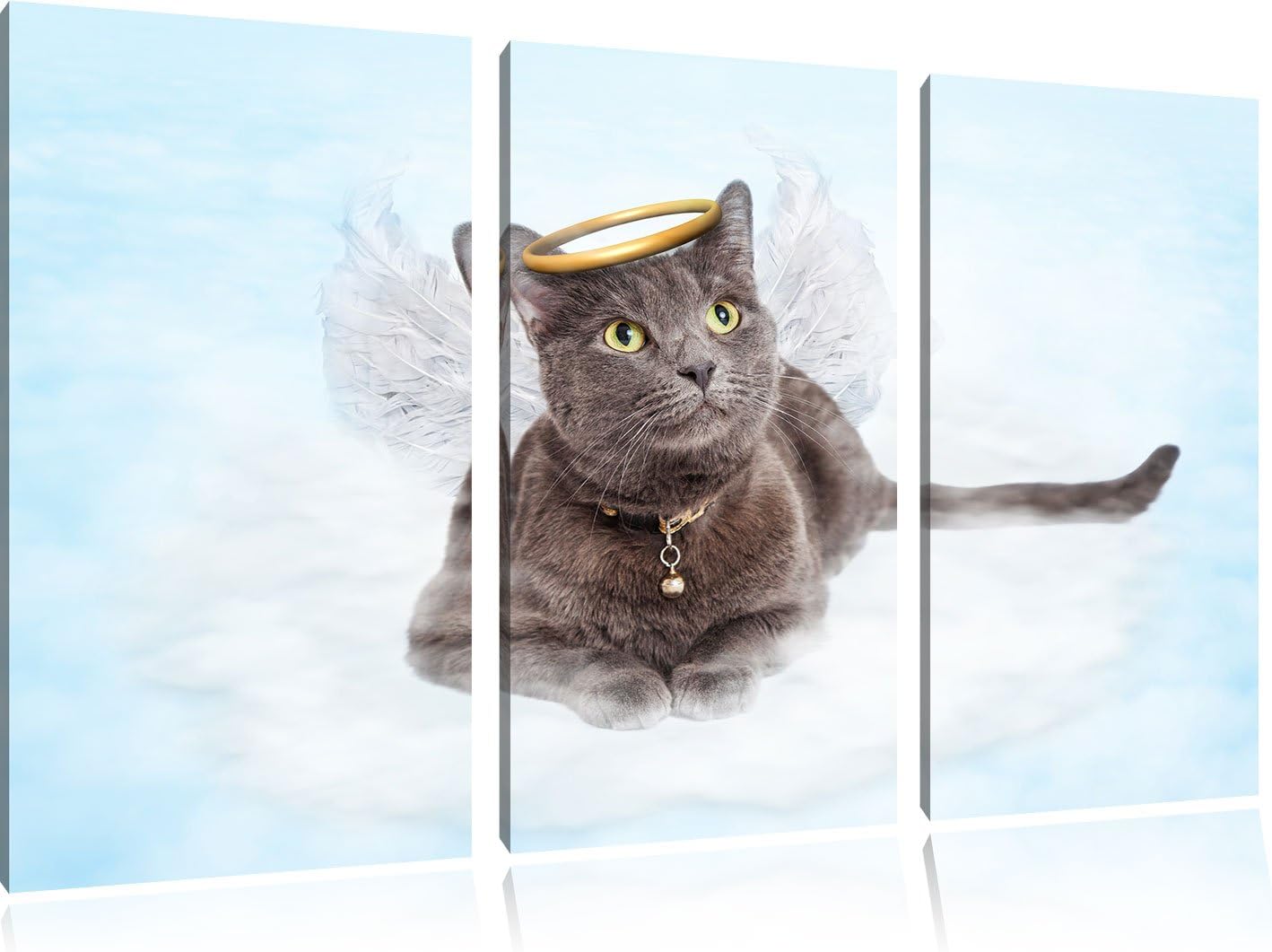 Pixxprint Katzen-Engel auf Wolke / 3-Teilig/Gesamtmass 120cm Leinwandbild bespannt auf Holzrahmen/Wa