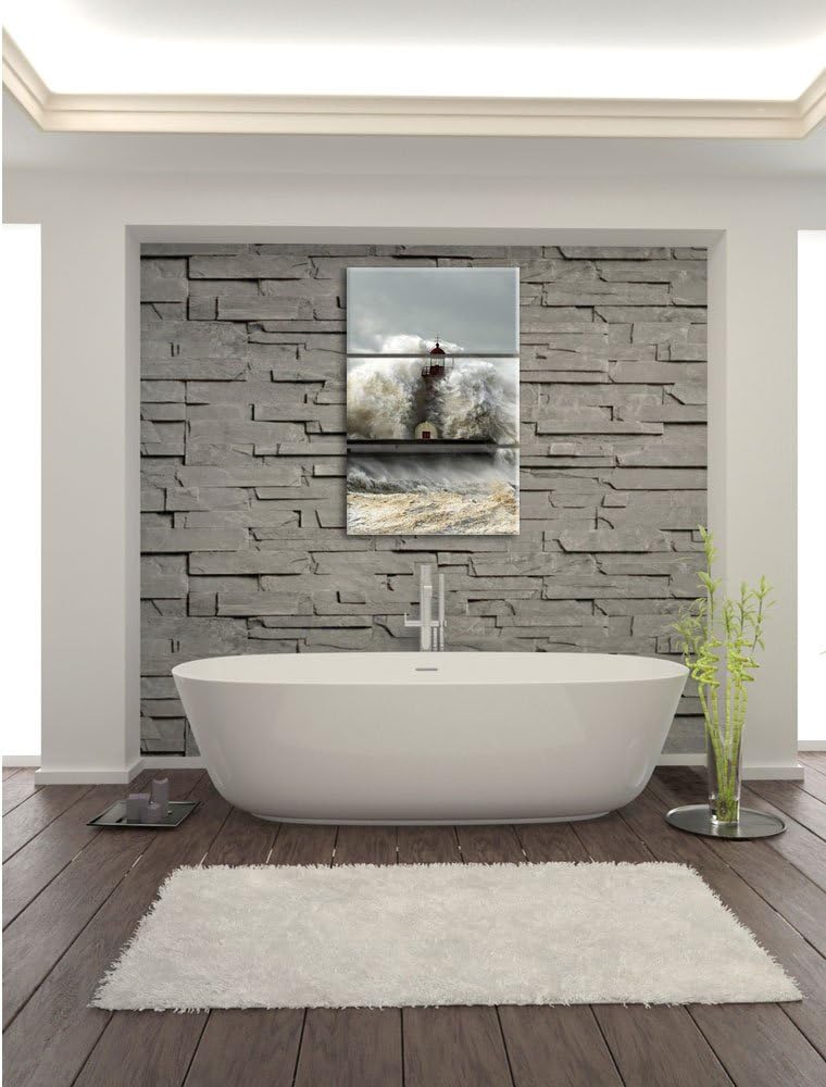 Pixxprint Leuchtturm im Sturm als Leinwandbild - Grösse: 3-Teilig (120x80cm) - Wandbild - Kunstdruck