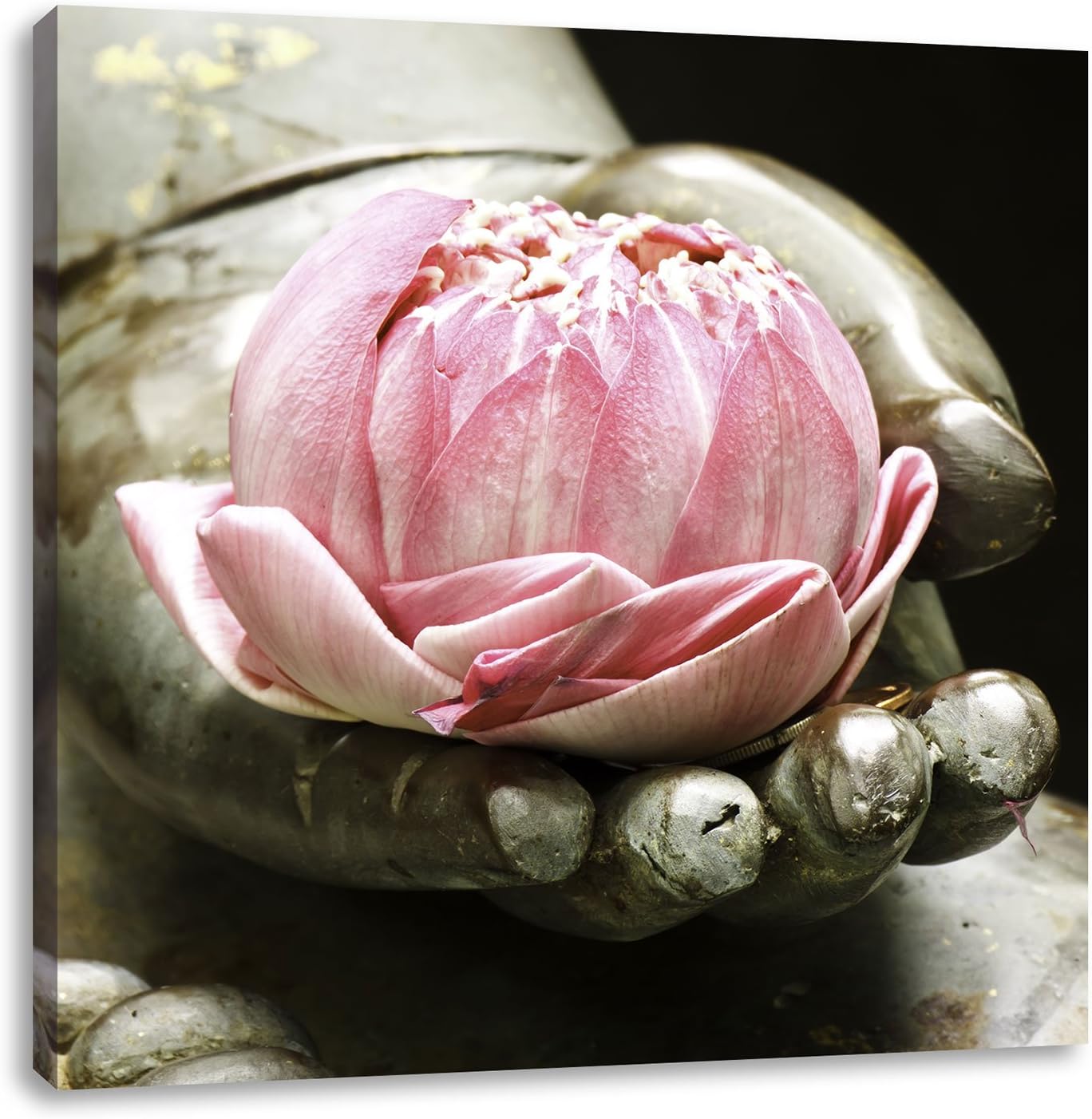 Pixxprint Lotus auf der Hand eines Buddhas, Format: 70x70 auf Leinwand, 70x70