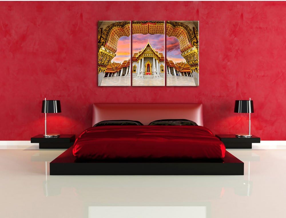 Pixxprint Marmortempel von Bangkok als Leinwandbild | Grösse: 3 Teilig (120x80) | Wandbild| Kunstdru