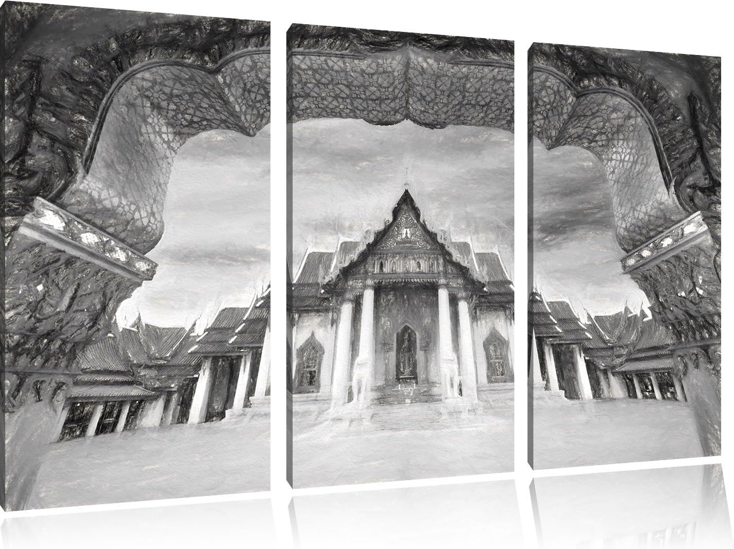 Pixxprint Marmortempel von Bangkok Kunst / 3-Teilig/Gesamtmass 120cm Leinwandbild bespannt auf Holzr