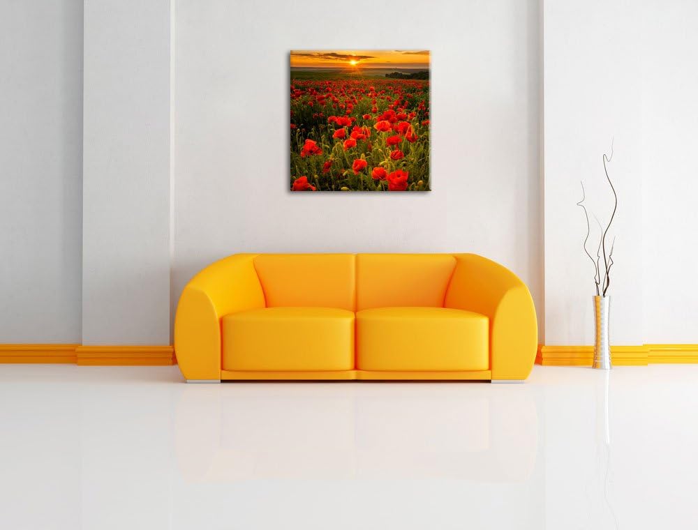 Pixxprint Mohnwiese im Sonnenuntergang als Leinwandbild/Grösse: 70x70 cm/Wandbild/Kunstdruck/fertig