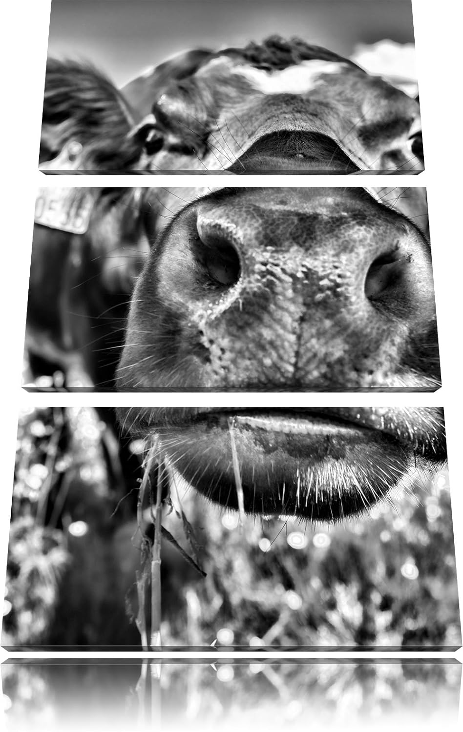 Pixxprint Monocrome, Süsse Alpen Kuh auf Bergwiese 3-Teiler Leinwandbild 120x80 Bild auf Leinwand