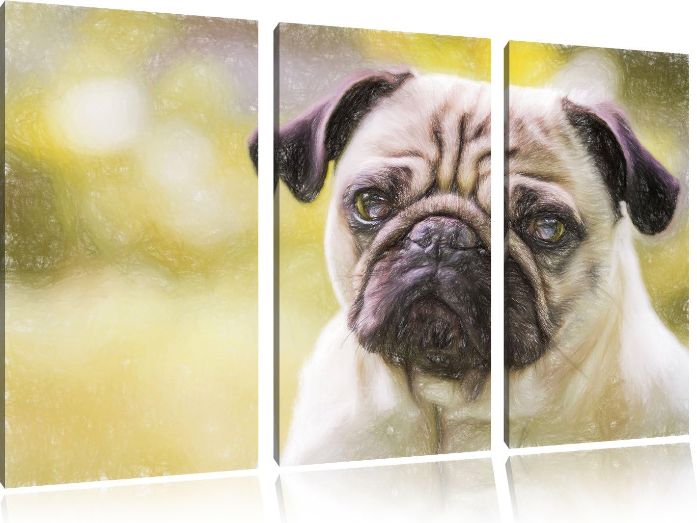 Pixxprint Mopsporträt Kunst Buntstift Effekt als Leinwandbild/Grösse: 3 Teilig (120x80) / Wandbild/K