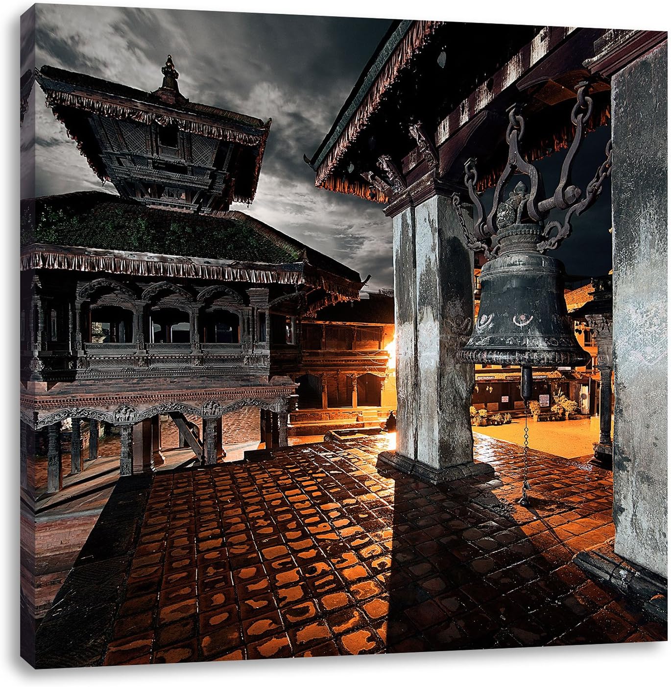 Pixxprint Mystische Stadt, Format: 70x70 auf Leinwand, XXL riesige Bilder fertig gerahmt mit Keilrah