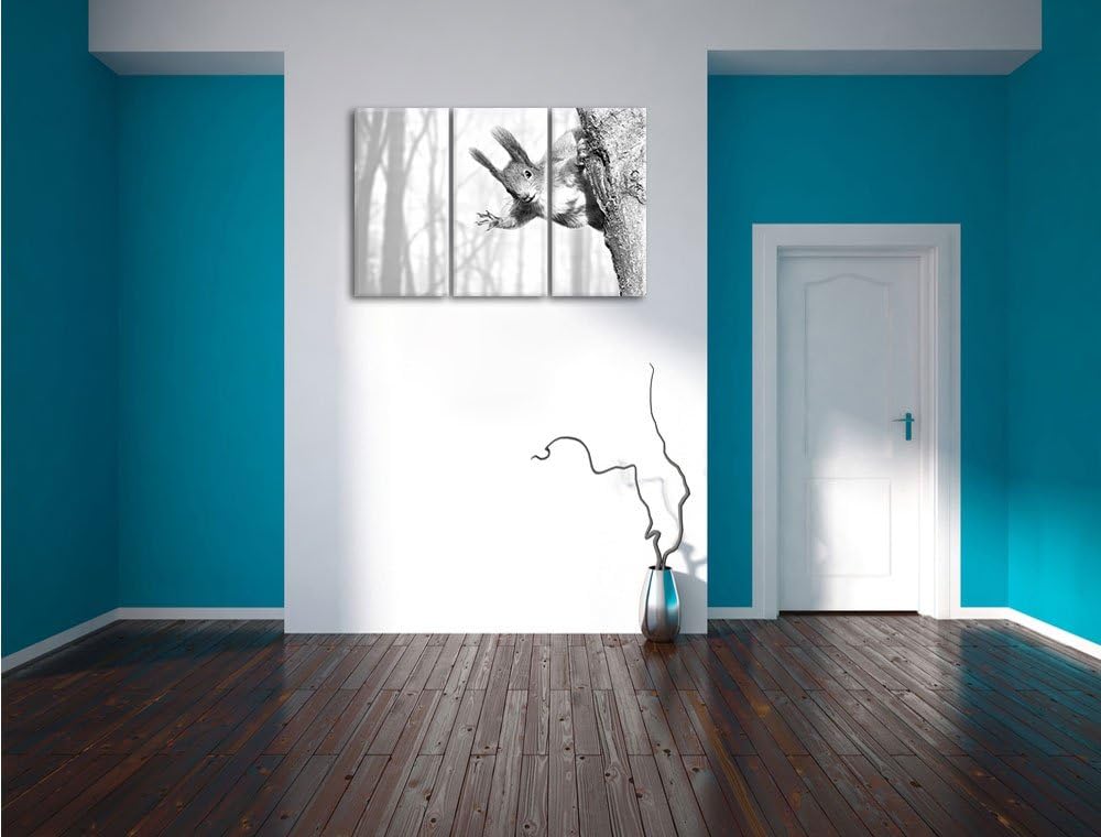 Pixxprint Neugierig rotes Eichhörnchen Kunst B&W 3-Teiler Leinwandbild 120x80 Bild auf Leinwand