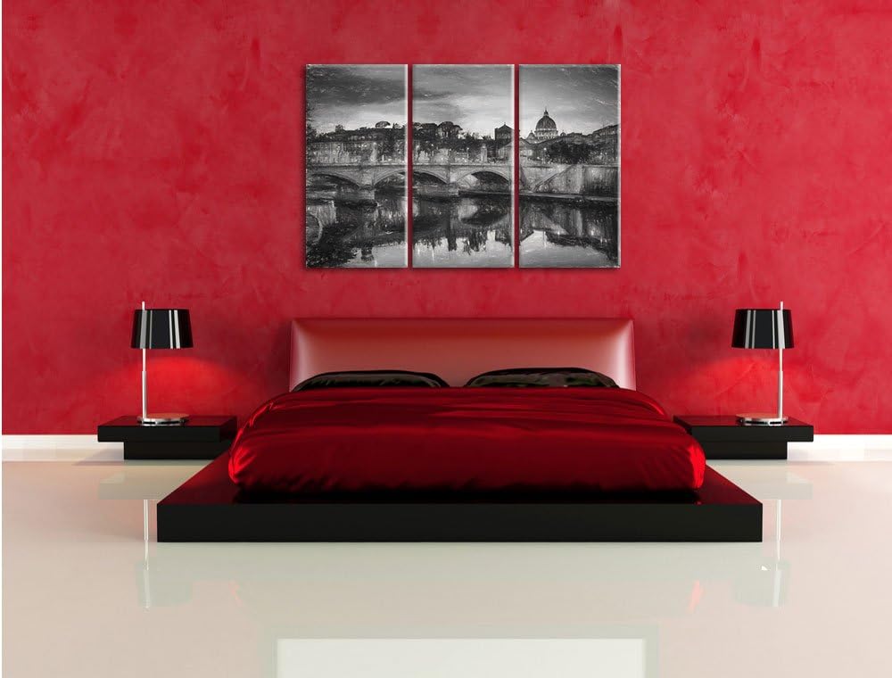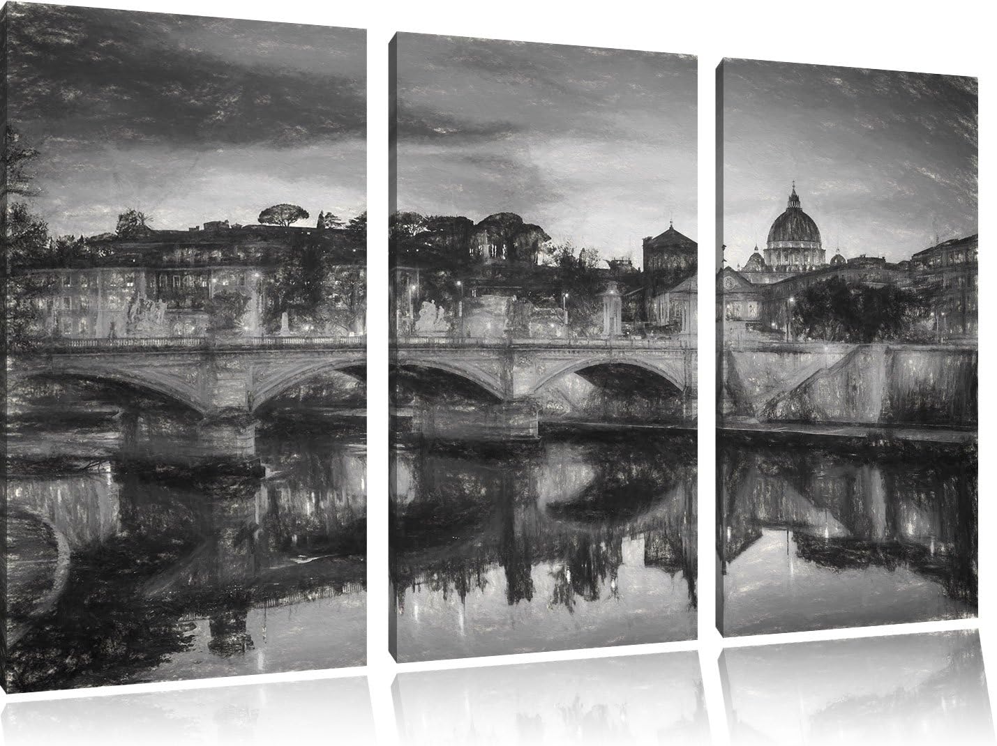 Pixxprint Rom an der Tiber in Richtung Kathedrale St. Peter Kunst Kohle Effekt 3-Teiler Leinwandbild