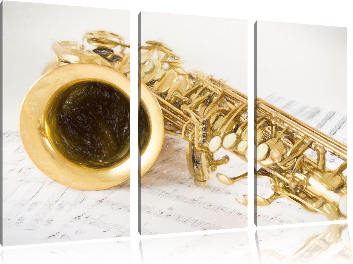 Pixxprint Saxophon auf Notenpapier als Leinwandbild/Grösse: 3 Teilig (120x80) cm/Wandbild/Kunstdruck