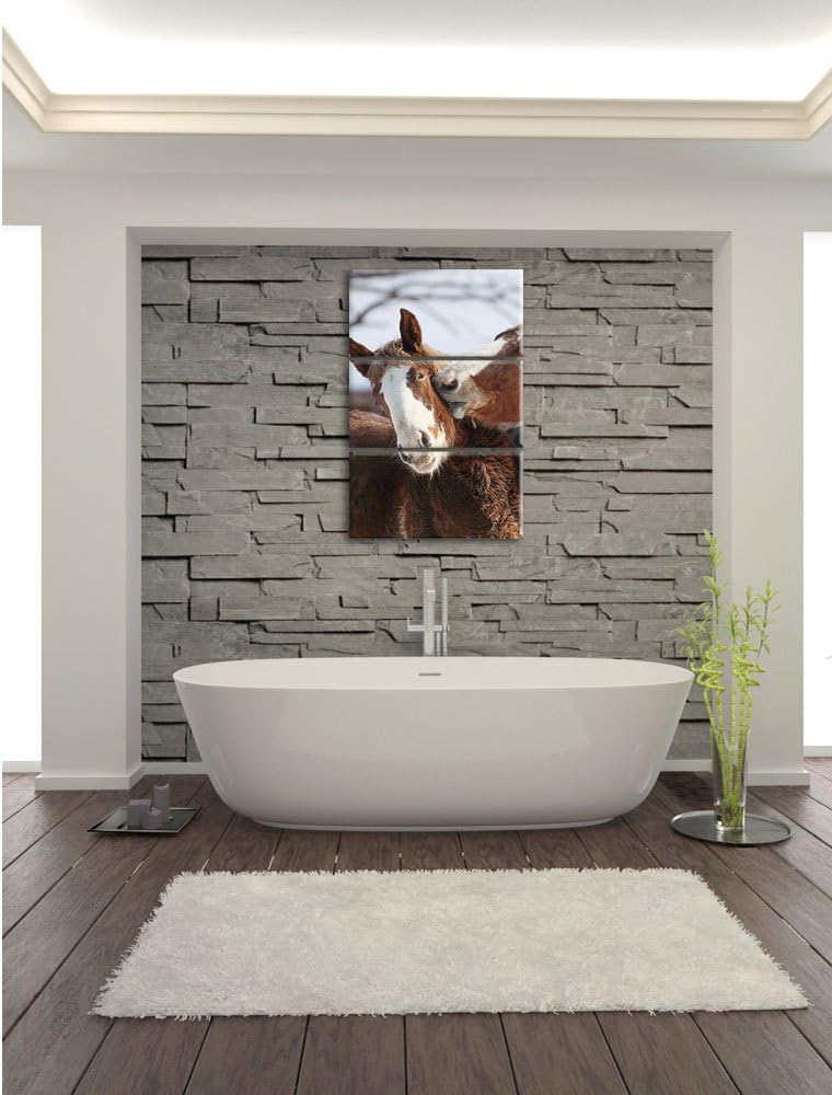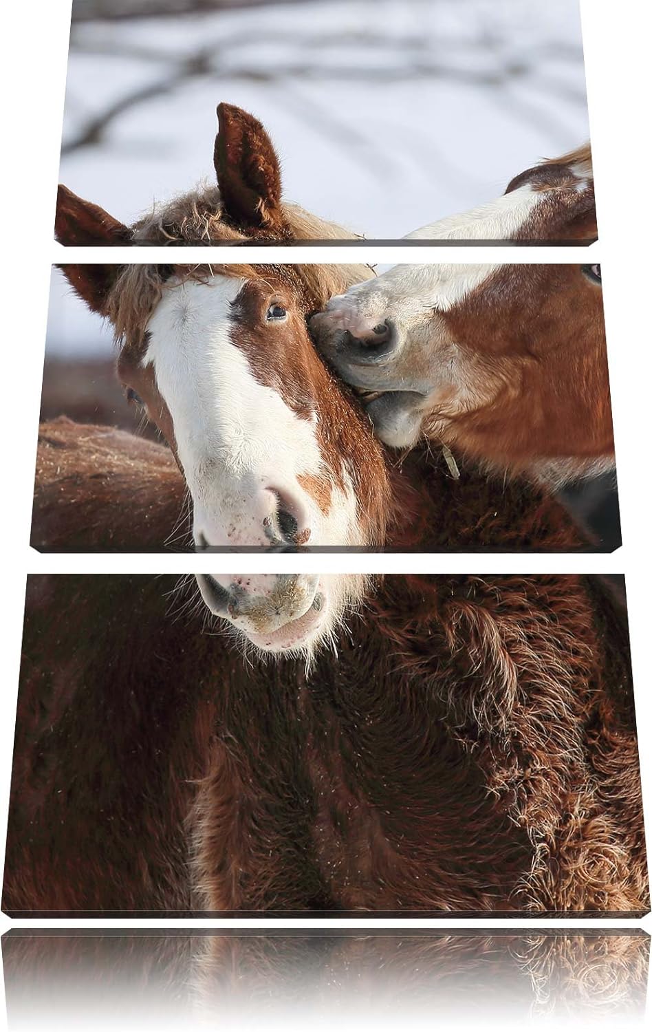 Pixxprint schmusende Pferde als Leinwandbild/Grösse: 3 Teilig (120x80) cm/Wandbild/Kunstdruck/fertig