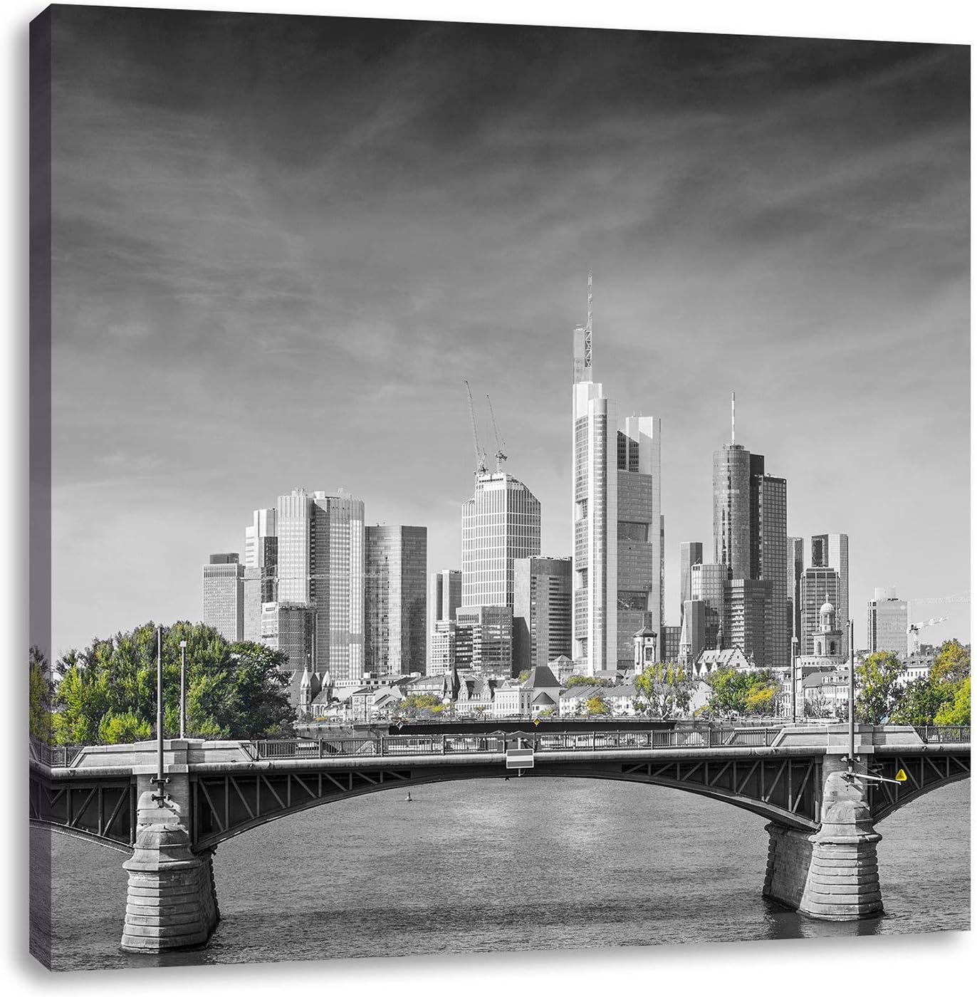 Pixxprint schöne Skyline von Frankfurt am Main schwarz/weiss, Format: 70x70 auf Leinwand, 70x70