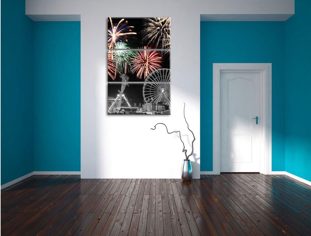 Pixxprint Silvester Feuerwerk schwarz/weiss als Leinwandbild/Grösse: 3 Teilig (120x80) cm/Wandbild/K
