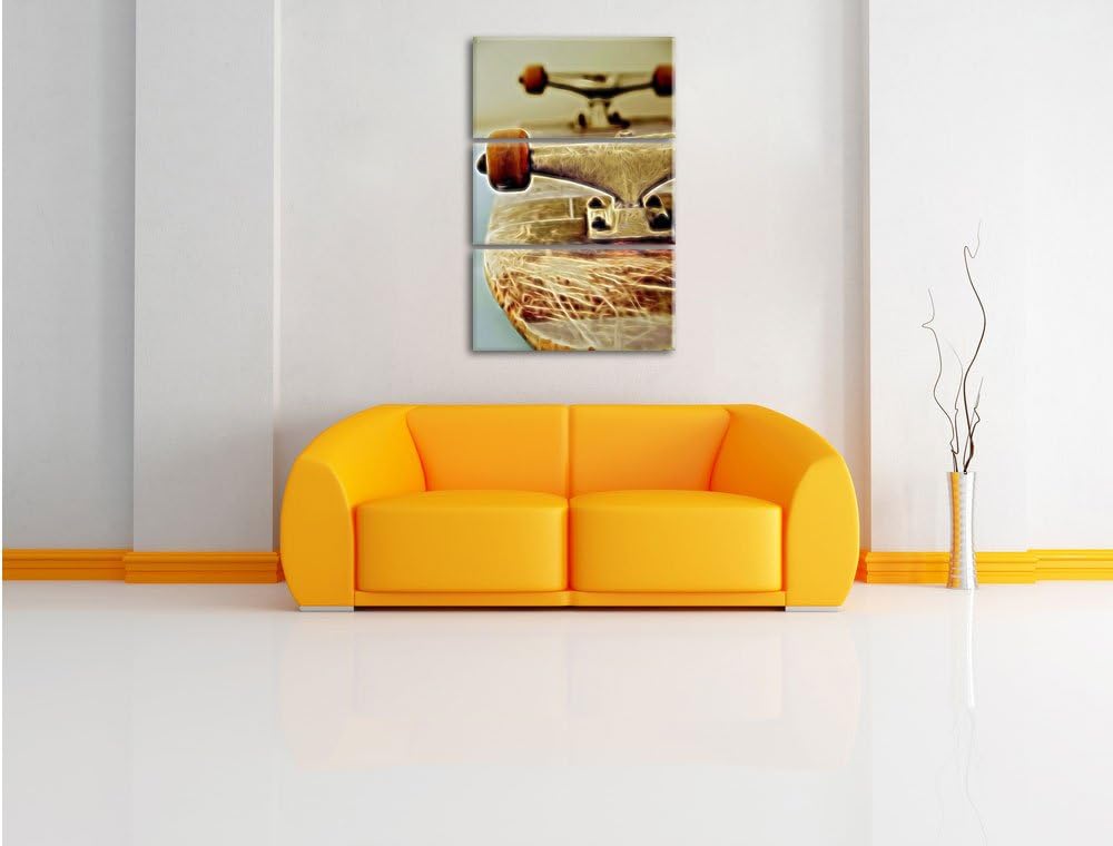 Pixxprint Skateboard als Leinwandbild | Grösse: 3 Teilig (120x80) | Wandbild| Kunstdruck | fertig be