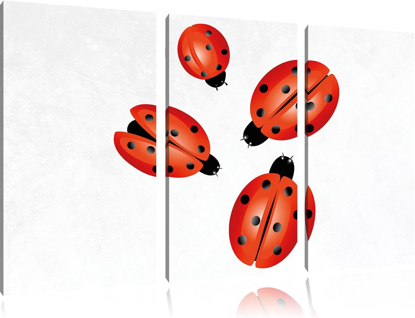 Pixxprint Süsse Marienkäfer weiss 3-Teiler Leinwandbild 120x80 Bild auf Leinwand, riesige Bilder fer